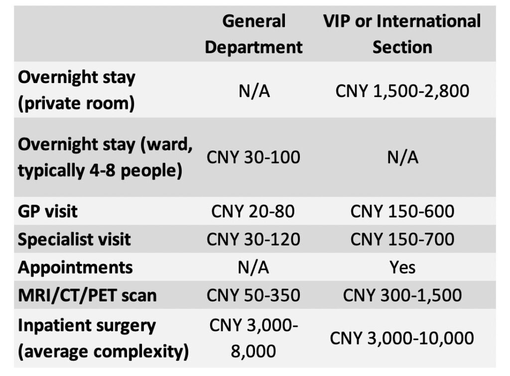 For foreigners, international hospitals can cost 3–5 times more than public hospitals.